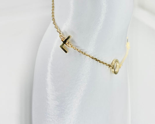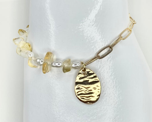 Hammered Metal Charm Natural Stone And Pearl Beaded Anklet